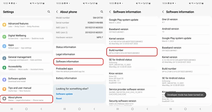7. Tap Software information and locate the Build Number option.
