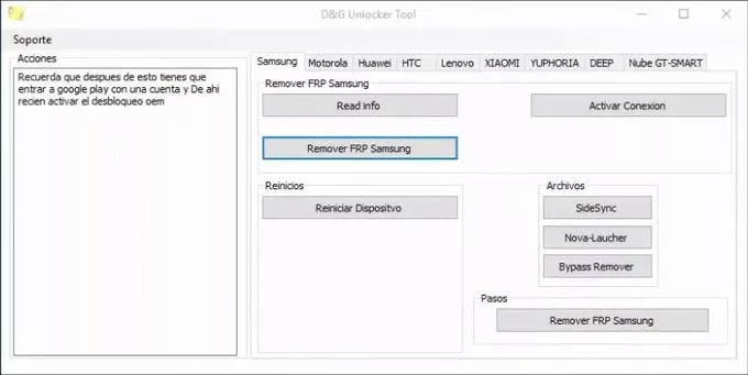 D&G Password Unlocker, a popular FRP bypass tool among technicians, focuses on bypass Factory Reset Protection (FRP) lock on Samsung, Motorola, Huawei, HTC, Lenovo, Xiaomi, Yuphoria. It can also be used to remove Android screen locks like PIN, pattern, and password and recover device access. The software tool is lightweight, as it takes up just a small portion of computer memory space.
