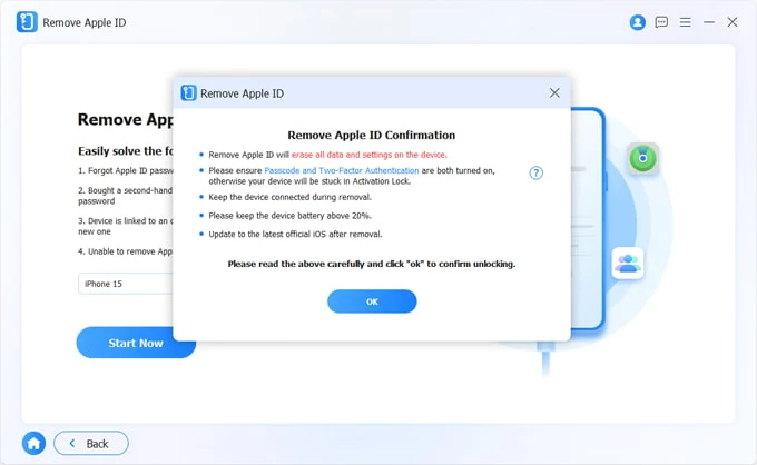 If you're ready to move forward, follow the steps below so you don't worry about how to remove Apple ID without password.