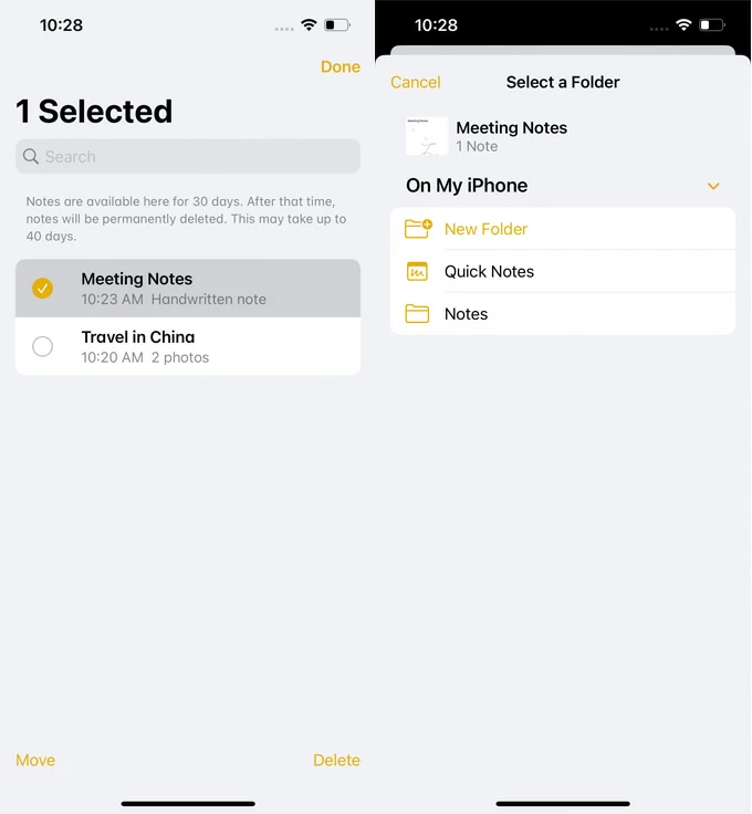 Most often, when your notes are gone from iPhone after iOS update, it's likely that they had been already deleted and moved to the Recently Deleted folder. You're able to recover deleted notes on an iPhone for up to 30 days. If you can't see Recently Deleted in Folders list, it could mean that you didn't delete any note in recent days.