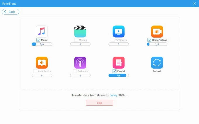 Step 4: You should see types of media and the amount of the items in your iTunes library. To add music back to iPhone, check "Music" and "Playlist".