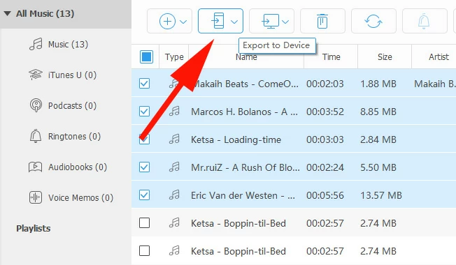 Step 4. Select the songs and playlists you want to transfer, or simply check them all.