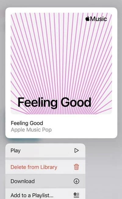 5. To download music from Apple Music to your iPhone 16, long-press the song, album or playlist you want and tap Download to get them all.