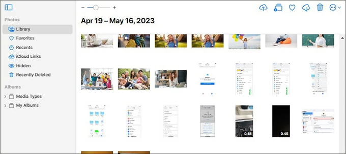 In fact, using iCloud Photos that comes with iOS devices lets you back up your iPhone photos to an external hard disk. Once the iCloud Photos is enabled, photos on your iPhone are automatically uploaded to the cloud for backup. After you download photos on your computer by signing in to the iCloud app or visiting the iCloud web page, you can import photos from your iPhone to your external hard drive.