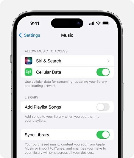 Apple Music is an excellent music streaming service that provides millions of tracks for online listening and offline playback. With an Apple Music subscription, you can download purchased songs on iPhone and sync Apple Music across devices on the same account, making it effortless to transfer music from old iPhone to new iPhone without computer.