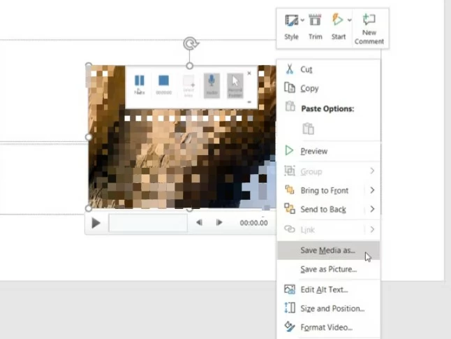 4. Finally, you can view the recorded video as a presentation slide. Right-click on the slide and tap Save As to save the file at the appropriate location.