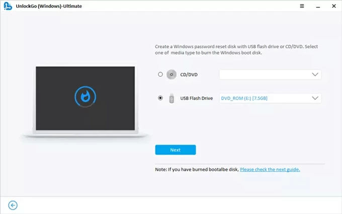 Fire up the application, and plug a blank USB drive into computer. Then click the USB Flash Drive button to create a bootable USB drive. The whole process will be finished in about one minute.