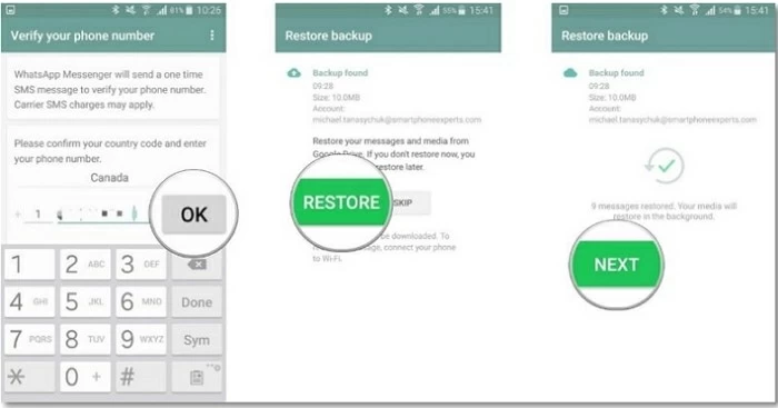 Step 3. Restore backup from Google Drive when your phone asks; or log in to your account to sync the backup automatically if you skip the step.