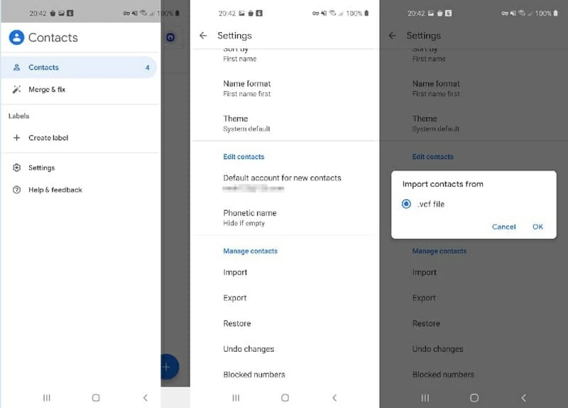 Finally, you can manually restore the contacts to your Android Contacts app.