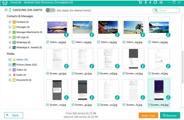 Step 4: Preview and recover data from the internal memory of an Android device