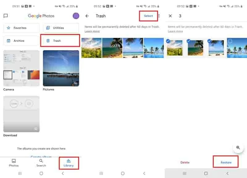 In addition, Google also provides different service like Google Photos, Google Contacts, Gmail, etc. for Android users to back up and restore images, videos, contacts and other various data types when thre's a data loss. Similarly, you can retrieve Android delete data from the trash folders within limited time.