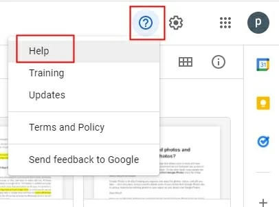 2. Click the "question-shaped" icon from the top right side, then select "Help", and lastly tap on "Find or recover a file".