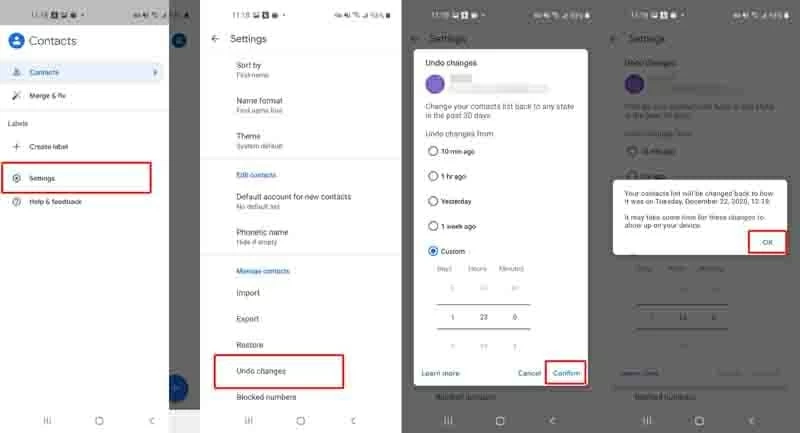 If your contacts are routinely synced with Google Contacts, it grants you to restore contact data reaching up to 30 days back since the day it's backed up.
