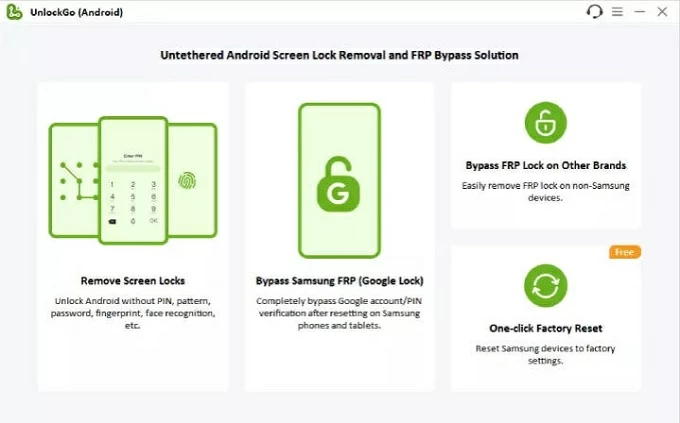 iToolab UnlockGo Android is a quite powerful software application that allows you to instantly remove Android locks from a phone or tablet easily, including a PIN, password, pattern, fingerprint, and even face lock. What's more, you can also use it to remove Google's FRP lock on a Samsung, Motorola, Xiaomi, Redmi, Vivo, OPPO, and Realme device.