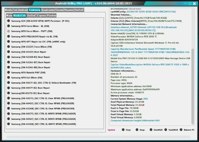 Android Utility Tool supports most Android brands and models, including Samsung, Xiaomi, Huawei, Redmi, Vivo, Nokia, etc. and supports devices based on MediaTek, UNISOC and Qualcomm. The latest version of Android Utility Tool V165 also adds support for more new models, such as Samsung Galaxy A24.