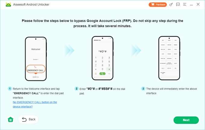 This professional Android FRP removal tool can safely bypass Google account lock after a factory reset to regain control of your device. It is compatible with all Samsung models and Android versions, including phones and tablets. Compared with other methods, it is also the most reliable and practical. This is how to bypass Google FRP Lock on your Samsung phone: