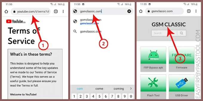 6. At the top of the YouTube page, type gsmclassic.com in the search box and proceed.