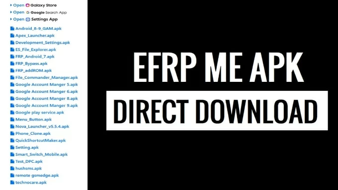 EFRP.Me APK is a specialized tool designed to bypass Google verification on Samsung or other Android devices for free, allowing you to regain access when locked out due to forgotten Google account information or after performing a factory reset.