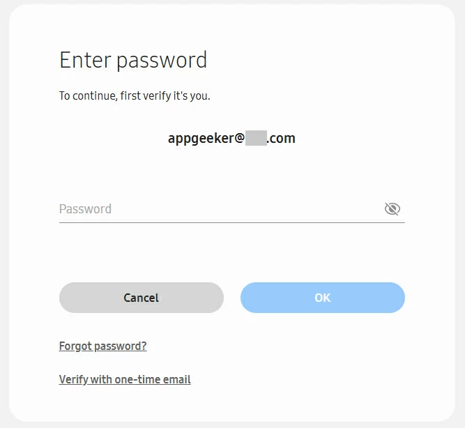 5. Input your Google account password to verify that it's you trying to reset the Samsung phone.