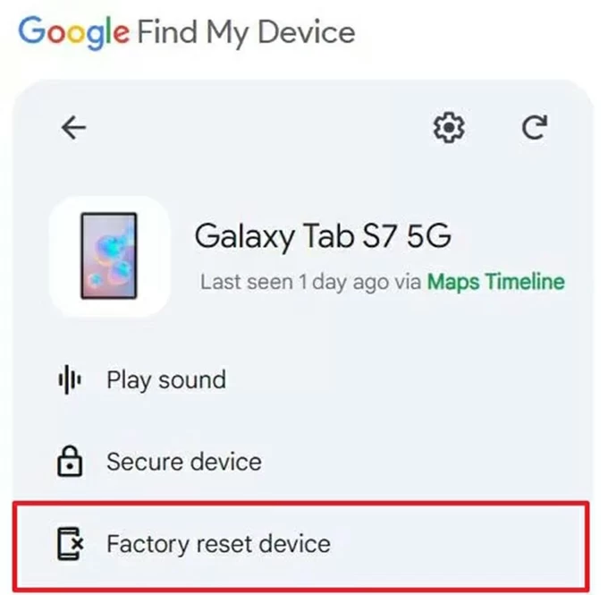 All you need is to access Google Find My Device website, provide your Google account and password, and then remotely erase or reset your Samsung tablet without password. This is a factory reset procedure, deleting all data, downloaded apps, and settings of yours, and removing Samsung tablet forgotten password.