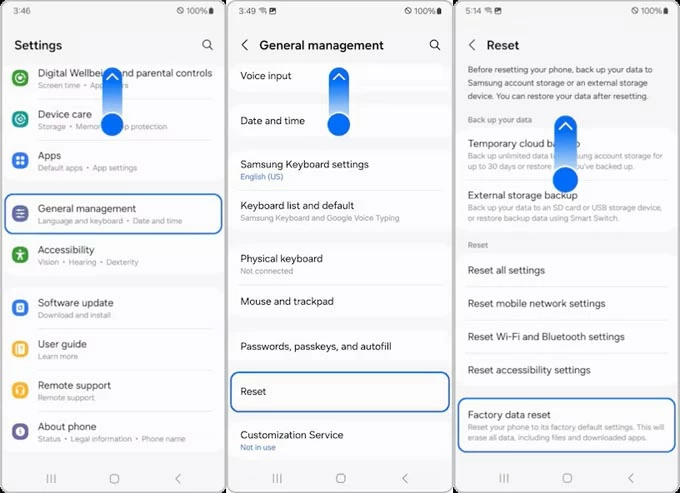 Samsung has a "Factory data reset" function built into Settings app to help you quickly clear your data and factory reset Samsung Galaxy.