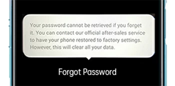 It's worth to reiterate that you could fail to clear the lockscreen passcode of your OPPO with your fingerprint, since the enrolled fingerprint method has been cut off. In ColorOS 7 and above devices, tapping on the "Forgot Password" delivers you an alert shown as image below, stating that you can't retrieve your password when forgotten and need to restore your OPPO phone to its factory settings, and by doing so, all data will be completely cleared.