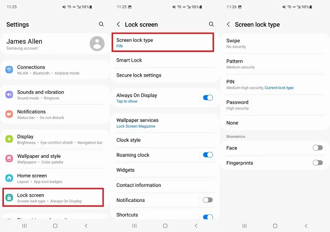 This way, the lock screen PIN will be removed from your Android phone or tablet completely. If you're using a Samsung Galaxy phone, the steps to turn off PIN locks may vary slightly: