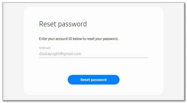 2. Input the Email address or Phone number linked to your Samsung account and click Reset password.