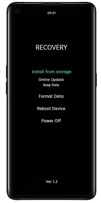 3. Press and hold both the Power and Volume Down buttons for around 5 seconds at the same time until you see the OPPO logo appear. The device is in Recovery Mode now.
