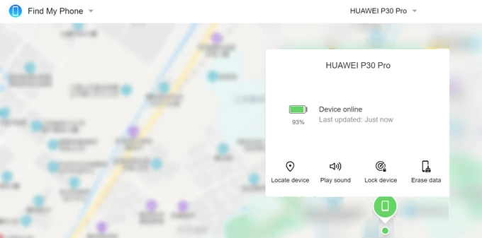 If you're looking for a way to unlock Huawei phone without Google account, you can take advantage of Huawei Find Device app or Huawei Cloud website to reset the device by your HUAWEI ID that was previously registered on your phone. The built-in "Erase data" function will restore your Huawei to factory defaults even it's locked out and all data and preferences (including the memory card) will be cleared.