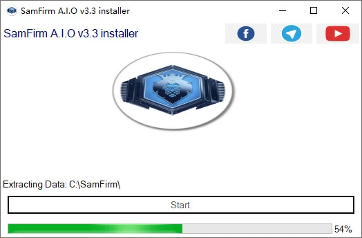 6. When SamFirm A.I.O v3.3 installer opens, click Start button to initiate the installation process.