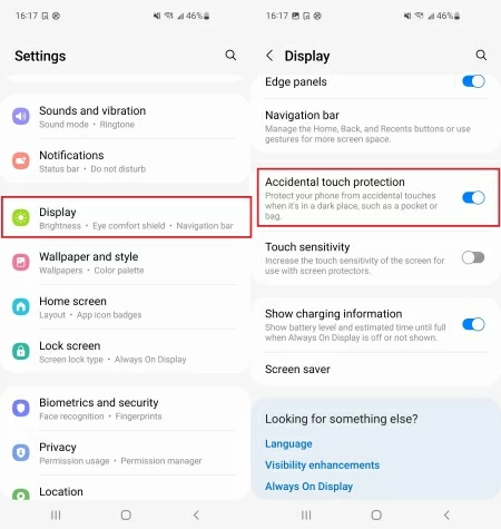 This setting acts as a digital safeguard. When the phone detects it is in a dark environment like a pocket or bag, it prevents accidental touches. Go to Settings > Display, then turn on Accidental touch protection to prevent misdials or pocket-unlock operations that lead to multiple password errors and device lockouts.