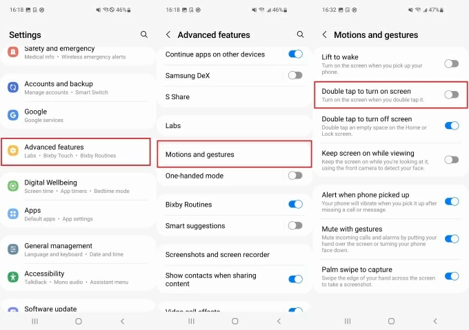 An innocuous setting, but if activated repeatedly by friction or minor knocks while inactive, it can silently register failed unlock attempts. Head to Settings > Advanced features > Motions and gestures, locate this Double tap to turn on screen feature and ensure it's turned off.