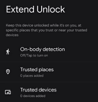 Samsung's Extend Unlock, previously known as Smart Lock, is designed to keep your smartphone unlocked under specific pre-configured conditions. These conditions include on-body detection, trusted places, or trusted devices.