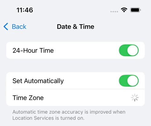 There's the option to set the time zone automatically, ensuring that you can always verify your Apple identity. On your iPhone or iPad, go to Settings > General > Date & Time and turn on the switch next to Set Automatically.