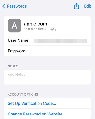 Getting into passwords section to see your Apple Account password can be a bit different for each password manager. For security reason, most of managers may requires you to verify your identity before reveal the password, such as using Face ID, Touch ID, or entering a device passcode.