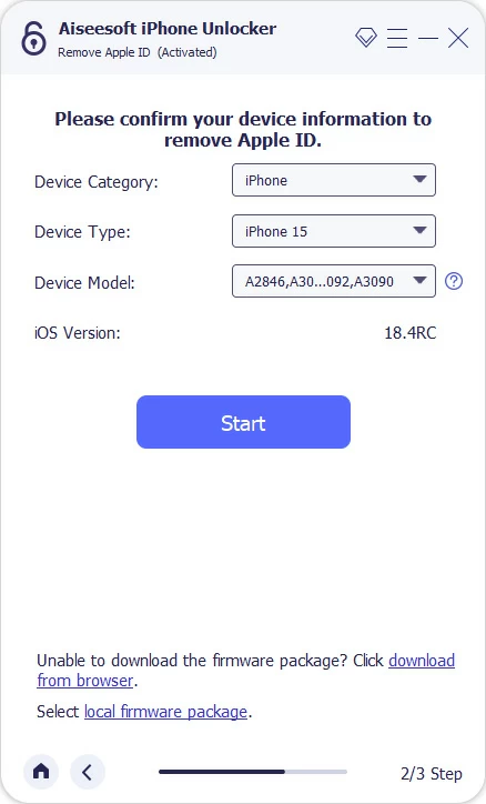Step 4. Click "Start" to begin downloading the appropriate firmware for your phone model. If you have a strong internet connection, the download should be finished in a fast manner.