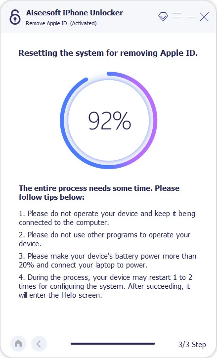 When you see an "Apple ID has been removed" window, disconnect your iPhone from the computer. Wait for your device to restart.