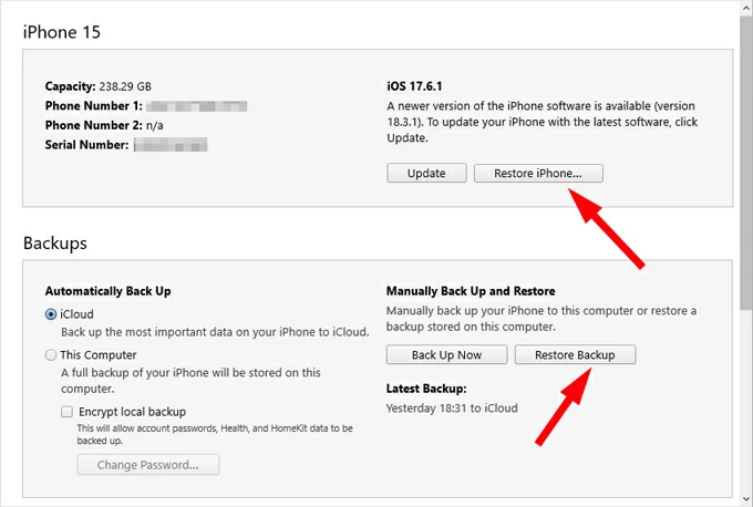 4. When prompted, turn off Find My on your iPhone before restoring it. You can go to Settings > [Your name] > Find My, then switch the "Find My iPhone" option off.