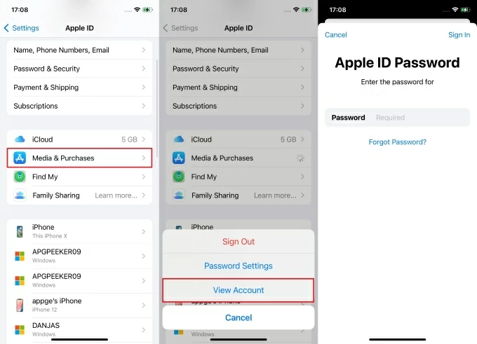3. In the pop-up window, choose View Account and enter your Apple ID password as prompted.