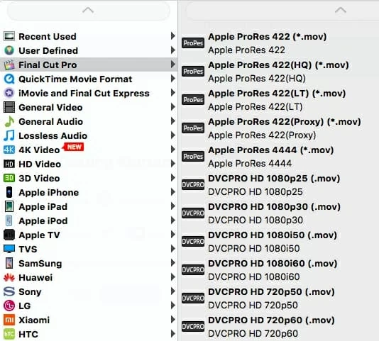 Step 2: Select an output format that's FCPX can read