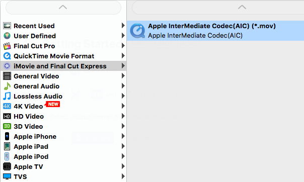 Click it, In the next window that opens, there are a full range of formats you can choose from. To convert Blu-ray for iMovie, head to iMovie and Final Cut Express category on the left side, then select the only Apple Intermediate Codec(AIC) (*.mov) option from its opening list.