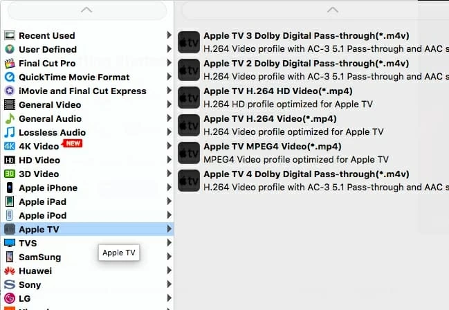 However, the traditional ways of home entertainment is changing because of the Internet. Millions of people now prefer to listen to music, watch video or movies online or purchase a digital copy version of their favorite films to play on iPhone, iPad, or Apple TV. If you have large collection of movies archived on Blu-ray, it would be a good option for you to stream Blu-ray movies to Apple TV 4 for watching on your large screen TV. But it is well known that Apple TV supports very few file formats, which include MOV, MP4 and M4V videos, meaning Blu-ray cannot be playback on your Apple TV natively.