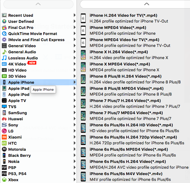 To get the best possible playback on your iPhone, you could choose an appropriate pre-defined profile under the Apple iPhone category. Selecting one of these presets will automatically adjust all the settings to fit whatever you choose.