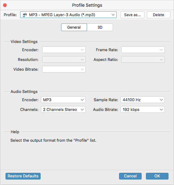 You can then tweak the audio quality by clicking the Settings button at the bottom center of the window. This will get you into a Profile Settings panel, from where you can fine-tune the conversion settings such as bit rates, sample rates, channels.