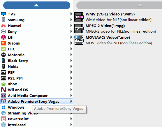 Or you can change the format by clicking it, and it will open a new window with a wealth of format profiles and presets displayed in front of you. Now, you are free to choose any format as required. Note that this program offers you Sony Vegas preset profiles under Adobe Premiere/Sony Vegas category.