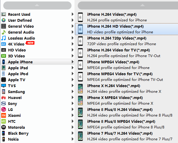 Users are well cared for with the program's device-oriented presets. For most people, if you convert Blu-ray to a format that's playable on your iPhone, iPad, Kindle Fire, Xbox One, PS4, Samsung phones or whatever other device model in the preset profiles list, picking one of the presets will be optimal possible for playback. Also see: how to play Blu-ray on iPhone.