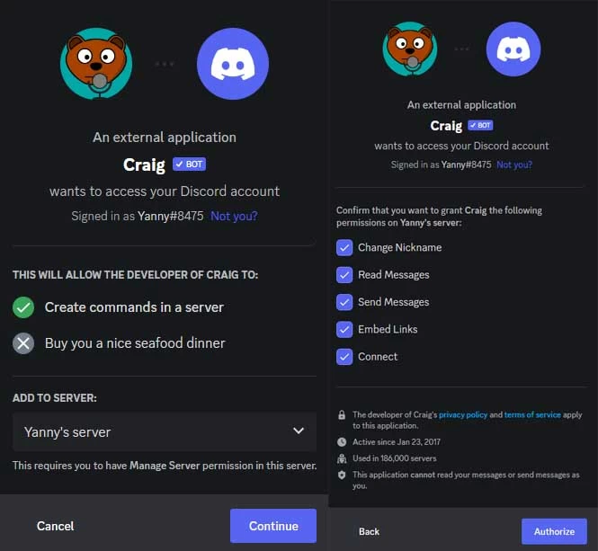Step 2: Next, you will be requested to allow Craig Bot to join the server.