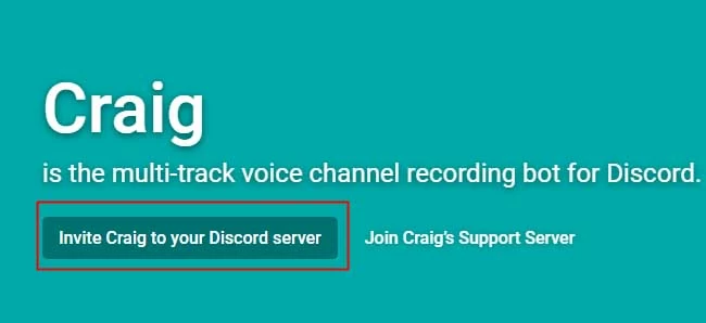 Step 1: Hit Invite Craig to your Discord server.