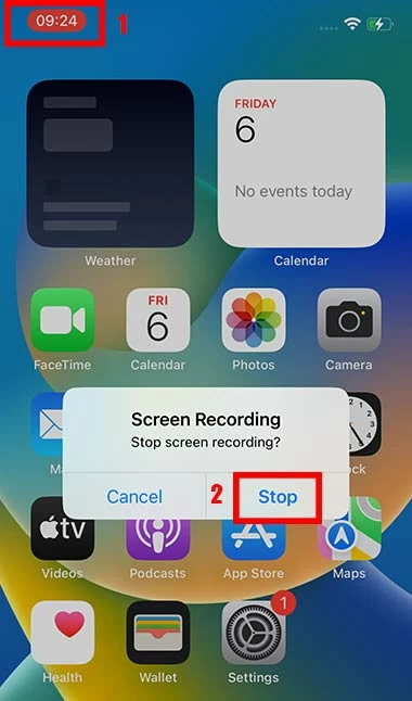 Step 3: Once the call ends, you can pull up or down again to open the Control Center and tap the red recording button to stop recording. Otherwise, you can tap the button on the top of the screen to stop recording.